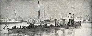 Named after Catamarca Province,[3] the ship was ordered from the Friedrich Krupp Germaniawerft shipyard in Kiel, Germany, in 1910 because Argentina could not build warships of that size itself[2] and was launched in mid-1911. She was turned over to the Argentine Navy and commissioned on 13 April 1912. Catamarca arrived in Buenos Aires on 5 July and was initially assigned as the flotilla leader of the Scout Group (Grupo de Exploradores). The destroyer was then transferred to the Training Division the following year and ferried Prince Henry of Prussia from Buenos Aires to Montevideo, Uruguay. The ship's task during this time was to train crewmen for the two Rivadavia-class battleships then under construction in the United States.[4]