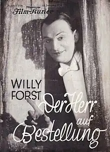 A Gentleman for Hire (German: Der Herr auf Bestellung) is a 1930 German musical comedy film directed by Géza von Bolváry and starring Willi Forst, Paul Hörbiger and Trude Lieske.[1] The film's sets were designed by the art director Robert Neppach. It is also known as The Darling of Vienna, the title by which it was released in the United States in 1933.[2]