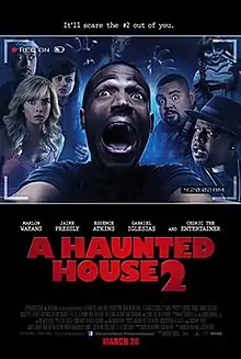 A Haunted House 2 is a 2014 American satirical horror comedy film directed by Michael Tiddes and starring Marlon Wayans. The film is the sequel to the 2013 film A Haunted House and the final installment in the duology. Produced by IM Global Octane and distributed by Open Road Films, the film was released on March 28, 2014.[3] Like its predecessor, the film received negative reviews from critics, and earned over $25 million at the box office.