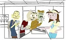 A storyboard for the second episode had been fully produced and completed in 2002, and it was ordered by Cartoon Network itself; in its plot Kitty Bobo is kicked out of his home and moves in with Monkey Carl (he proves to be a poor guest). Had the series been picked up, A Kitty Bobo Show would be the first to have a woman as a creator and showrunner (before Julie McNally Cahill as co-creator of My Gym Partner's a Monkey, Rebecca Sugar as sole creator of Steven Universe and Julia Pott as the creator of Summer Camp Island).[3] Dunn divorced Kaliher in 2005 and moved to the East Coast along with her daughter to work as creative director for a 3D pharmaceutical studio in Baltimore.[5] In fall of 2005, Kaliher pitched to Walt Disney Television Animation a pilot's revised version, with the characters a bit younger.[9] Kaliher released a 50-page bible in 2006, exploring the Kitty Bobo's universe in more depth.[7] Kaliher has since left the animation industry to pursue a career in software development.