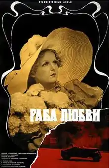 A Slave of Love (Russian: Раба любви, romanized: Raba lyubvi) is a 1976 Soviet romantic comedy-drama film directed by Nikita Mikhalkov and written by Friedrich Gorenstein and Andrey Konchalovskiy. It stars Elena Solovey, Rodion Nakhapetov and Aleksandr Kalyagin. The film is about a silent film actress, Olga Voznesenskaya (Elena Solovey), whose films are so admired by the revolutionaries that they risk capture to see her on the screen. The character of Olga was inspired by Vera Kholodnaya.[1]