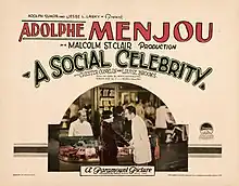 A Social Celebrity is a 1926 American silent comedy drama film directed by Malcolm St. Clair and starred Louise Brooks as a small town manicurist who goes to New York City with her boyfriend (Adolphe Menjou), a barber who poses as a French count. The film is now considered lost.[1]