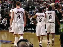 McKie with Sixers' teammates Keith Van Horn and Allen Iverson in 2003