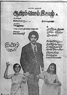 Aayiram Vaasal Idhayam (transl. A heart with a thousand entrances) is a 1980 Indian Tamil-language film directed by A. Jagannathan and produced by Selvam Arts.[1] The film stars Sudhakar, Radhika, Roja Ramani and Vadivukkarasi. It was released on 1 January 1980.[2][3]