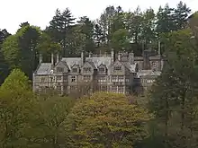 At the same time that Abbeystead House was being built, Douglas and Fordham designed two lodges for the estate.[8] Lancaster Lodge stands at the head of the drive leading to the house. This has an L-shaped plan and is "quietly Elizabethan" in style.[2] It is a Grade II listed building.[9] York Lodge stands 0.5 miles (1 km) to the east on the road to Dunsop Bridge[2] and is also listed Grade II.[10] In 1891–92 the same architects designed stables and an adjoining pair of cottages for the house.[11]