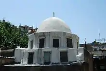 The mosque has two domes, one over the mihrab and one over a tomb chamber, the latter being ribbed.[4] It has a small and simple minaret with an octagonal shaft. On its top eight windows open to each of its eight sides of which three have been closed. It is covered by a small dome.[5]