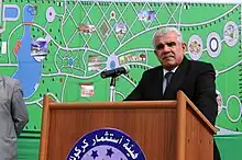 After years of an Arab dominated government under Saddam Hussein, many Kurds celebrated the election of a Kurdish political representative.[2] Abdel Rahman Mustafa repeatedly denies allegation from Turkey and some Turkmen representative that any attempts have been made to change the demographic character of Kirkuk or to "re-kurdify" the city after Arabization program under the former Saddam Hussein regime.[3]