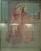 In 1916, Chughtai's first painting in a revivalist 'oriental' style appeared in the Modern Review magazine. He had his first exhibition in 1920 at the Punjab Fine Art Society.[4] He also exhibited with the Indian School of Oriental Art during the 1920s, by which time he had become quite renowned. His work contributed greatly to Lahore's burgeoning modern art scene. While he predominantly worked with watercolors, Chughtai was also a print-maker, perfecting his etching skills in London during visits in the mid-1930s.[9] His sketches were used in many books in Punjabi poetry by Bhai Vir Singh for illustrating his famous poems like "Kambadi Kalai" and including his famous epic "Rana Surat Singh" . Chughtai offered his gratitude to Bhai Vir Singh for becoming part of these illustrations as a young artist in his letter to him on 11.04.1929[10]