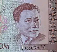 ![]() Abdylas Maldybaev, as shown on the Kyrgyz 1 som note | |