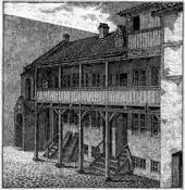 Presumably the illegitimate daughter of Wolf von der Wisch, a nobleman, Abel Cathrine von der Wisch was born in Schleswig or Holstein in either 1626 or 1627. She married Hans Hansen Oster who was a bookkeeper (proviantskriver) at Proviantgården on Slotsholmen in Copenhagen as well as inspector of Queen Sofie Amalies's estates on Lolland and Falster.[1] In 1675, she funded the construction of a row of seven houses with pauper accommodation in Dronningens Tværgade, founding Abel Cathrines Stiftelse on 27 December 1675, just a few days before her death.