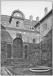 Abel Cathrines Stiftelse is a symmetrical, four-winged building constructed in red brick.[3] It was listed in 1980.[4] In the vestibule inside the main entrance are two plaques: one of them reads :"Abel Cathrine oprettede som enke efter proviantskriver Hans Hansen ved testamente af 27. December 1675 denne stiftelse til bolig for fattige, syge og sengeliggende mennesker. Hun døde den 1. Januar 1676. Hendes navn bevares i taknemmelig hukommelse." and the other one reads "Abel Cathrines boder var i Dronningens Tværgade fra 1676 -1885. Ved Magistratens omsorg og med kommunens hjælp flyttedes stiftelsen til denne bygning, der tages i brug den 31 oktober 1886: Guds nåde være over dette hus og dem som bor deri.".[5]