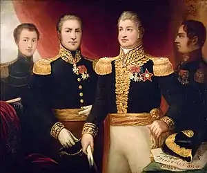 Abel Hugo (left), with his father, General Hugo, flanked by two of his uncles (Julie Hugo, 1820s)