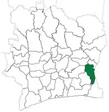 ![]() Location in Ivory Coast. Abengourou Department has had these boundaries since 2008. | |