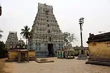 The original structure is believed to be existent from time immemorial, while the later additions are believed to have been built by Cholas, Pallavas, and the main temple was built by Atchudevaraya of Vijayanagar Dynasty. There are inscriptions from later Chola emperors like Rajaraja Chola I (985–1014), Kulothunga Chola I (1070–1120),[3] and Rajendra Chola III (1246–1279).[4] Rajanarayana Sambuvaraya was a chieftain of Medieval Cholas whose contributions are documented in lithic inscriptions across various temples in modern-day Villupuram, Cuddalore, Tiruvannamalai and Kanchipuram districts and also in his Sanskrit work Madhuravijayam. He repaired, revived the services and inaugurated festivals of the temple.[5]