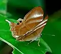 Abisara savitri, the Malay tailed Judy, is a small butterfly found in Asia that belongs to the Punches and Judies, that is, the family Riodinidae.