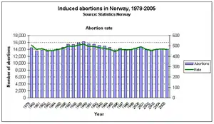 Between 1999 and 2003, 1,740 applications for abortions between the 12th and 16th week were considered by commissions in Norway. Of these, 1647, or 95.2% were approved.[5]