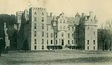 The castle was constructed by the Bysets, lords of Strathdee and Aboyne, before 1233, as a motte and bailey. Edward I sent instructions for its fortification in 1307.[6] It was later turned into a stone keep. In 1671, Charles Gordon, 1st Earl of Aboyne rebuilt the west wing as a tower house, parts of which are still visible. A mansion house was added in 1701 and an east wing in 1801. In 1869, kitchen improvements were made using granite and stepped gables. The Mansion House was updated in the 1880s by Sir Cunliffe Brooks by adding baronial-style ornamentation. George Truefitt did some restoration work in the later part of the 19th century. The castle was remodelled in 1986 by Ian Begg.[7]