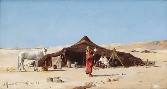 After attending the public schools of Geneva, he studied art with Barthélemy Menn and Auguste Baud-Bovy. In 1886, he went to Algiers, to join his mother and brother after his father's death. He stayed until 1888 and returned on two other occasions; 1889-1890 and 1893-1896.[2] During these visits, he developed an interest in Orientalism, a genre which was already in favor with some of his compatriots, including Charles Gleyre and Auguste Veillon.[3] His paintings there were executed in the traditional styles he had learned in Geneva.