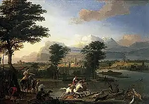 Hondius was born in Rotterdam and trained under Pieter de Bloot (1601โ1658) and Cornelis Saftleven.[1] He lived in Rotterdam until 1659 and moved then to Amsterdam. He moved to London in 1666, where he spent the rest of his life. Hondius combined throughout his career several stylistic influences and struggled to develop a style of his own. He however specialised somehow in animal pieces: more than two-thirds of his paintings, etchings and drawings are hunting scenes, animals fighting and animal studies. He also executed landscapes, genre and religious scenes.