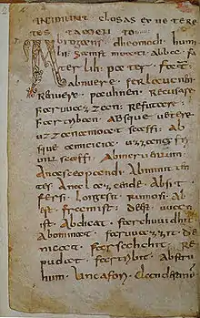 Abrogans, also German Abrogans or Codex Abrogans (St Gall, Stiftsbibliothek, Cod. 911), is a Middle Latin–Old High German glossary, whose preserved copy in the Abbey Library of St Gall is regarded as the oldest preserved book in the German language.