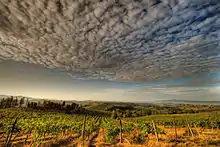 Abrusco is a minor blending variety permitted in several Denominazione di origine controllata (DOC) and Denominazione di Origine Controllata e Garantita (DOCG) regions of Tuscany, most notably the Chianti DOCG. These include the Capalbio DOC in the hills south of the Grosseto province where along with other local red grape varieties, Abrusco is permitted to make up to 50% of the red and rosé blend along with Sangiovese (which must make up at least 50% of the wine). Here Abrusco grapes that are destined for DOC wine production must be harvested to a yield no greater 10 tonnes/hectare for the red wine and 12 tonnes/ha for the rosé. In order to attain DOC designation the finished rosé must attain a minimum alcohol level of at least 10.5% and 11% alcohol by volume for the reds.[3]
