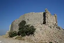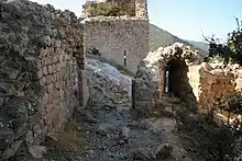 In 1222 the Shia Yemeni lord of Sinjar, al-Makzun al-Sinjari, led a force of roughly 50,000 fighters to support the Alawites of the coastal region against their Kurdish rivals after the latter had killed several Alawites celebrating Nowruz in the Sahyun Fortress. One of the fortresses he captured during the ensuing conquest was Abu Qubays.[17] In 1233 al-Aziz Muhammad, the Ayyubid ruler of Aleppo and successor of az-Zahir Ghazi, ended the semi-autonomous rule of the Banu al-Daya who had since repossessed the fortress, forcing their lord Shihab al-Din ibn al-Daya to relinquish both Abu Qubays and Shaizar after the latter slighted al-Aziz by not adequately abiding a request for supplies. He was allowed to keep his properties Aleppo in return for not putting up resistance to the Ayyubid army.[18] Damascus-born Arab geographer al-Dimashqi noted in 1300, during Mamluk rule, that Abu Qubays was one of several fortresses held by the Ismailis and that it was part of the Province of Tripoli.[19]