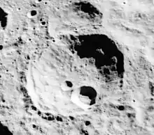 Abul Wafa is an impact crater located near the lunar equator on the far side of the Moon, named after the Persian mathematician and astronomer Abu al-Wafa' Buzjani.[1] To the east are the crater pair Ctesibius and Heron. In the northeast lies the larger crater King, and to the southwest is Vesalius.