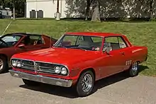 To promote automobile manufacturing in Canada, the APTA (also known as the "Auto Pact") in the 1960s had provisions prohibiting sales of certain United States-made cars. General Motors responded by offering certain makes of cars manufactured in Canada primarily for the Canadian market such as Acadian, and Beaumont, which started as an offering in the Acadian line, but later became its own brand in 1966.[1] Initially, Acadians were retrimmed Chevy IIs, offered as a base model, mid-priced Invader and top-line Beaumont. The car used Pontiac styling cues, such as a split grille, but was marketed as a separate make, never as a Pontiac.[2] As with the concurrent Chevy II, Acadians were offered with four-cylinder, six-cylinder, and V8 engines. No Mark IV (big block) Acadians were ever produced in any year, unlike the sister car Chevrolet Nova SS. The choice of transmission depended upon the model and engine installed, three- and four-speed manual gearboxes or the two-speed Powerglide automatic. During its early years, the top-line Beaumont offered more brightwork than the equivalent Chevy II Nova. For 1963, a new mid-range series Acadian was introduced as the Canso, priced in between the Beaumont and Invader. It was available as two- or four-door sedan.