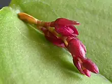 Acianthera modestissima is a species of orchid. The flower is magenta in color and is very small.