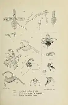 Acriopsis indica is a species of orchid in the genus Acriopsis. It is widespread through much of Southeast Asia, native to Yunnan, Assam, Andaman Islands, Cambodia, Laos, Myanmar, Thailand, Vietnam, Borneo, Java, Lesser Sunda Islands, Malaysia, Philippines, Sulawesi.