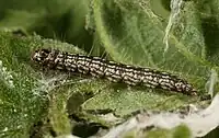 The wingspan is 19–22 mm. The moth flies in one generation from the end of May to August. The larva feeds on oak.