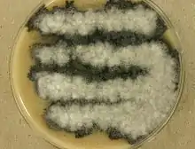 A. fusispora only reproduces asexually.[5] The colonies of A. fusispora are dense, matted and felt-like at the base, with cottony aerial hyphae.[7] The color of the colonies is initially dull white, but becoming grayish-brown, with black colony reverse.[7][9] The colonies can reach 4–7 cm in diameter within 14 days at 25 °C on Malt Extract Agar.[2] In vitro growth was found to be stimulated by exudates and extracts of Cassia tora.[2] The fungus also grows well and sporulates freely on potato dextrose agar.[1]