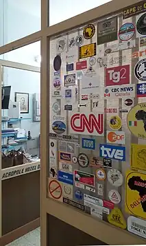 Nevertheless, the three "zen-like" Pagoulatos brothers and their wives[20] managed to restore the hotel in a building just opposite the ruins of the old one.[10] It has remained since then one of the most popular places for Western visitors, particularly journalists, archaeologists, humanitarians and other NGO workers. For this reason, the Acropole appears frequently in travel books.[21][22][23] A 1995 piece in the Washington Post praised the 41-room establishment as