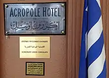 After the embassy of the Hellenic Republic was closed in September 2015,[25] Greece's new diplomatic representative as Honorary Consul became Gerasimos Pagoulatos, with the Honorary Consulate based at the Acropole Hotel.[26]