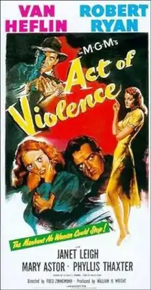 Act of Violence is a 1949 American film noir starring Van Heflin, Robert Ryan and featuring Janet Leigh, Mary Astor and Phyllis Thaxter.[3]