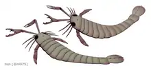 Acutiramus is a genus of giant predatory eurypterid, an extinct group of aquatic arthropods. Fossils of Acutiramus have been discovered in deposits of Late Silurian to Early Devonian age. Seven species have been described, five from North America (including A. cummingsi, the type species[1]) and two from the Czech Republic[2] (with one of them potentially found in Australia as well).[3] The generic name derives from Latin acuto ("acute" or "sharp") and Latin ramus ("branch"), referring to the acute angle of the final tooth of the claws relative to the rest of the claw.[4]