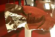 A. perneri was named in honour of Czech paleontologist Jaroslav Perner in 1994 and is known from fossilized remains consisting of several chelicerae, operculum with a genital appendage, coxae and several fragmentary body segments. The species was originally included in A. bohemicus, which is very similar and is known from the same time and region. The pattern of denticulation on the chelicerae is virtually identical, but the chelicerae themselves are slightly more narrow, with more angled tips and the teeth are less prominent and shorter.[11] A. perneri was regarded as a direct descendant of A. bohemicus by Chlupáč (1994).[11] Using measurements of preserved chelicerae, the maximum body length of A. perneri was originally estimated to have been between 1.4 and 1.6 metres (4.6 and 5.2 ft),[11] later being revised to 1.1 metres (3.6 feet).[7] Just like A. bohemicus, A. perneri occurs in Bohemia (in the Czech Republic), though in strata of Lochkovian (earliest Devonian) age.[11]