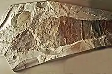With species being named as part of Pterygotus becoming increasingly diverse, researchers began to name subgenera, such as Pterygotus (Erettopterus), named by John William Salter in 1859 for species of Pterygotus with a bilobed telson, such as P. osiliensis.[12] The family Pterygotidae would be erected by Clarke & Ruedemann in 1912, and new subgenera were named for Pterygotus by Ruedemann in 1935. These subgenera included Pterygotus (Curviramus) and Pterygotus (Acutiramus) and were differentiated from other Pterygotus by the curvature of the denticles (teeth) of the chelicerae.[13] The name "Acutiramus" derives from Latin acuto ("acute" or "sharp") and Latin ramus ("branch"), referring to the acute angle of the final tooth of the claws relative to the rest of the claw.[4] The species originally included in the subgenus were P. (A.) bohemicus, P. (A.) buffaloensis and P. (A.) macrophthalmus.[14] P. buffaloensis was designated as the type species of the subgenus Acutiramus. Adhering to the rule of nomenclatural priority, the earliest used name should have priority. This was pointed out by Erik N. Kjellesvig-Waering in a 1955 publication, stating that using P. buffaloensis over P. cummingsi was "subjective" and in 1961, Kjellesvig-Waering recognised P. cummingsi as the name of the type species.[1] Acutiramus continued to be treated as a subgenus of Pterygotus until it was raised to the level of a separate genus by Leif Størmer in 1974.[13]