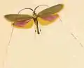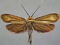 Its wingspan is 15–20 mm. The moth flies from late June to August depending on the location.