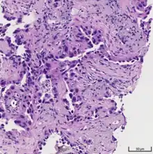 2. 1 2 3 4 5 6 Travis WD, Brambilla E, Noguchi M, Nicholson AG, Geisinger KR, Yatabe Y, et al. (February 2011). "International association for the study of lung cancer/american thoracic society/european respiratory society international multidisciplinary classification of lung adenocarcinoma". Journal of Thoracic Oncology. 6 (2): 244–285. doi:10.1097/JTO.0b013e318206a221. PMC 4513953. PMID 21252716.