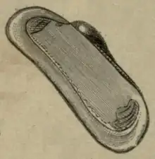 In 1854, a small bivalve mollusc was found attached to some whale blubber found floating off the coast of South Africa.[2] The mollusc was passed to the British malacologist Samuel Pickworth Woodward, who determined that the mollusc was new to science, and formally described it, naming the new species Adipicola pelagica. In 1927, the mollusc was seen again, this time attached to some floating whale debris in the northern Atlantic Ocean, and in 1964, a number of individuals were dredged up in the South Atlantic attached to a whale skull from a depth of 439 m (1,440 ft).[2]