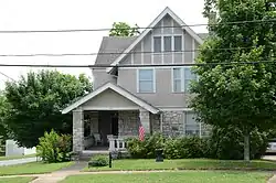 It is a 2+1⁄2-story structure, built out of coursed rubble limestone, material also used in the chimney and porch piers. It has a cross-gable roof configuration, with the front gable decorated with applied half-timbering over stucco. Below and left of the gable is the entry porch, also with a gabled roof. The house was designed by Theodore Sanders and built c. 1915. It is a high quality local example of Craftsman architecture.[2]