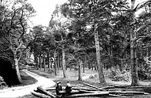 The house was built in the early 1900s[2] on land that was formerly part of Furzefield Copse.[3] It was designed in the style of an Elizabethan manor house[2] in accordance with the Tudor Revival architecture that was then popular. It takes its name from a nearby avenue of Scots pines, known as Admiral's Walk, planted by the explorer Vice-Admiral John Byron (1723–1786) (grandfather of the poet) who lived at Pirbright Lodge.[4][5] The pines were later felled.[4]