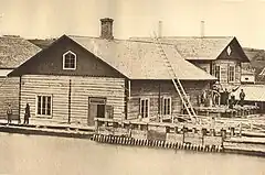 In 1856 Törngren bought an area by lower rapids of Tammerkoski in Messukylä and got permissions for silk and linen manufacturing. As there was no industrial linen production in Finland, it is not known how Törngren got this business idea, but speculatively the initiator was Törngren's wife Sofia. Raw material was widely available, as flax growing was common in Tavastia. However, the factory plan was postponed due to complaints. Törngren met his old friend Gustaf Wasastjerna, who had bought a nearby lot of an old ironworks at other side of the rapids in Tampere and planned to convert it into engineering works. The men decided to start business with joined forces, and Törngren applied for moving the location of his industrial rights to the other side of the river. A five-storey linen factory building was finished already in 1858 and taken into use in the following spring. Törngren's linen mill and Wasastjerna's engineering works were merged in 1861 as Tammerfors Linne- & Jern-Manufaktur Aktie-Bolag ("Tampere Linen and Iron Industry Ltd") but kept as separate business units. By the merger the men aimed to attract investors, but eventually they did not manage at gaining more capital because limited company concept was new in Finland, and Törngren and Wasastjerna finally owned 95% of the shares. The business developed favourably and in 1862 the linen mill was with its 755 workers the second biggest factory of Finland after the nearby Finlayson cotton mill.[1]