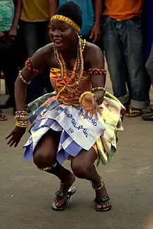 Adowa is a dance by the Akan people of Ghana. It is a popular traditional dance in Ghana and it is performed at cultural ceremonies like festivals, funerals, engagements, and celebrations. The Adowa dance is a sign of expression that allows performers to communicate their emotions and feelings through their hands and feet. There are different hand movements performed for each setting. People communicate positive emotions at weddings or engagements and negative emotions at funerals.[1][2]
