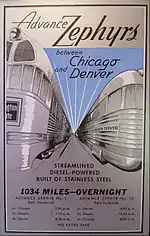 ![]() The Denver Zephyr in 1936 | |||||||||||||||||||||||||||||||||||||||||||||||||||||||||||||||||||||||||||||||||||||||||||||||||||||||||||||||||||||||||||||||||||||||||||||||||||||||||||||||||||||||||||||||||||||||||||||||||||||||||||||||||||||||||||||