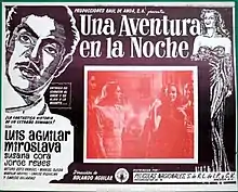 Adventure in the Night (Spanish: Una aventura en la noche) is a 1948 Mexican mystery film directed by Rolando Aguilar and starring Luis Aguilar, Miroslava and Susana Cora. The film's sets were designed by the art director José Rodríguez Granada. The plot focusses on two friends, a screenwriter and a film director, who pick up two young women on the road and offer then a lift. They later discover that the women had supposedly died two months earlier.