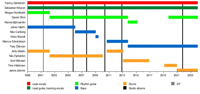 The band released Aeons Black in late 2012. In 2013, it was announced that drummer Malkki was expecting twins, and thus he decided to take a break from Aeon. His spot was temporarily filled by Emil Wiksten. However, as of January 28, 2013, Wiksten has replaced Malkki permanently.[16] Later in 2013, it was announced that bassist Marcus Edvardsson had stepped down in order to focus more on his other band Souldrainer. His replacement is Tony Östman. In October 2013, Daniel Dlimi left the band.[17][18] He was replaced by Ronnie Björnström, who had produced Aeons Black, in January 2014.[19] Björnström, in turn, departed from Aeon in March 2015, for health reasons. Dlimi returned to the band in September 2019. In late 2020, Dark Funeral drummer Janne Jaloma joined the band.