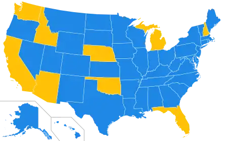U.S. president John F. Kennedy issued Executive Order 10925, which required government contractors to take "affirmative action to ensure that applicants are employed, and that employees are treated during employment, without regard to their race, creed, color, or national origin" but affirmative action eventually evolved into a complex system of group preferences which would face many legal challenges. Affirmative action included the use of racial quotas until the Supreme Court ruled that quotas were unconstitutional in 1978.[10] Affirmative action currently tends to emphasize not specific quotas but rather "targeted goals" to address past discrimination in a particular institution or in broader society through "good-faith efforts ... to identify, select, and train potentially qualified minorities and women."[2][11] For example, many higher education institutions have voluntarily adopted policies which seek to increase recruitment of racial minorities.[12] Outreach campaigns, targeted recruitment, employee and management development, and employee support programs are examples of affirmative action in employment.[13] Nine states in the United States have banned race-based affirmative action: California (1996), Washington (1998, rescinded 2022[14]), Florida (1999), Michigan (2006), Nebraska (2008), Arizona (2010), New Hampshire (2012), Oklahoma (2012), and Idaho (2020). Florida's ban was via an executive order and New Hampshire and Idaho's bans were passed by the legislature. The other six bans were approved at the ballot.[15] The 1996 Hopwood v. Texas decision effectively barred affirmative action in the three states within the United States Court of Appeals for the Fifth Circuit—Louisiana, Mississippi, and Texas—until Grutter v. Bollinger abrogated it in 2003.[16]