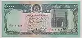 | Afs. 10 | 136 × 56 mm | Yellow green | Ahmad Shah Durrani mausoleum, Kandahar | Taq-e Zafar and Lion Gate | |||
